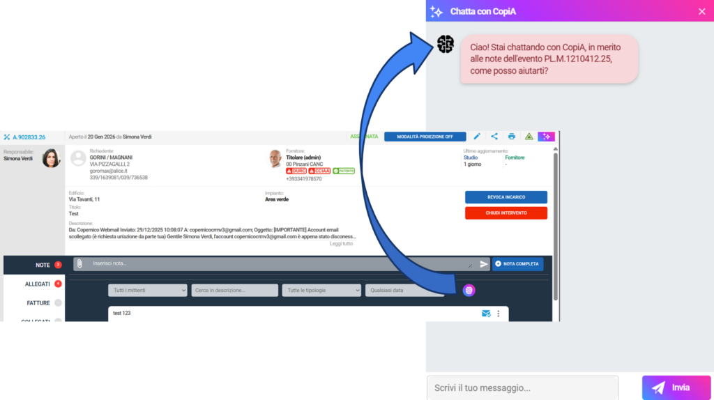 All’interno del pannello trovi  anche una chatbot con cui interagire in modo semplice e immediato. Puoi utilizzarla per ottenere supporto nelle attività quotidiane, chiarire dubbi operativi o ricevere suggerimenti rapidi, senza interrompere il tuo flusso di lavoro. Un ulteriore livello di assistenza pensato per rendere ogni operazione ancora più veloce ed efficace.