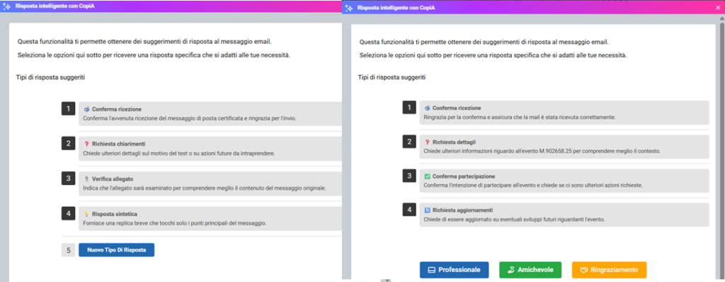 Dopo aver analizzato i messaggi, il sistema ti aiuta anche a passare all’azione: